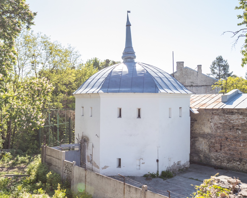 Й, хоча основний об’єм вежі кардинально перемурували, та принципові стилістичні й конструктивні особливості старої будівлі все ж були повторені. Вона лишилася восьмигранною й двоярусною, тинькованою і побіленою. Одначе, аж самі фундаменти були замінені, й наново викладені з бутового каменю, щебню і цегли. Сучасні стіни башта теж отримала цегляні, що від землі здіймаються на вісім метрів. Їх по верху зміцнюють залізні в’язи. Низько над землею і згори, майже під дахом, прорізано вузькі амбразурні віконця-бійниці.