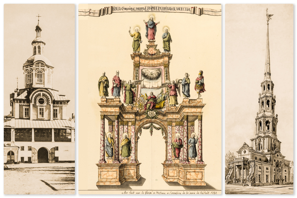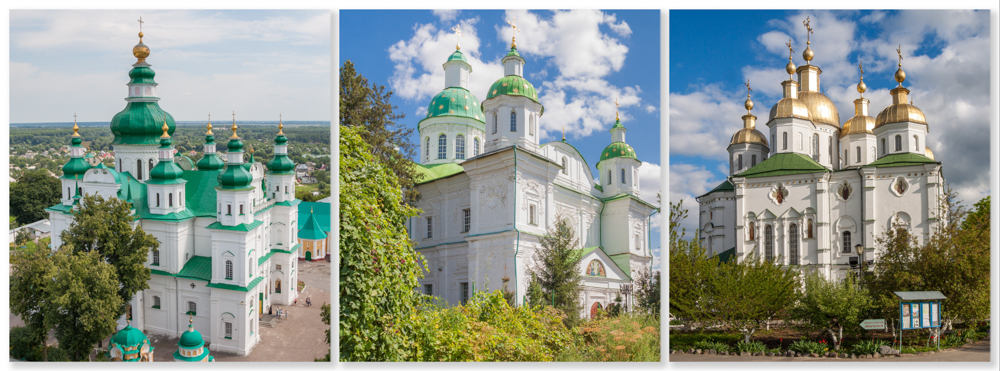 Собори з ряду Микільського в Києві: Троїцький в Чернігові, Преображенський в Мгарі і Хрестовоздвиженський у Полтаві