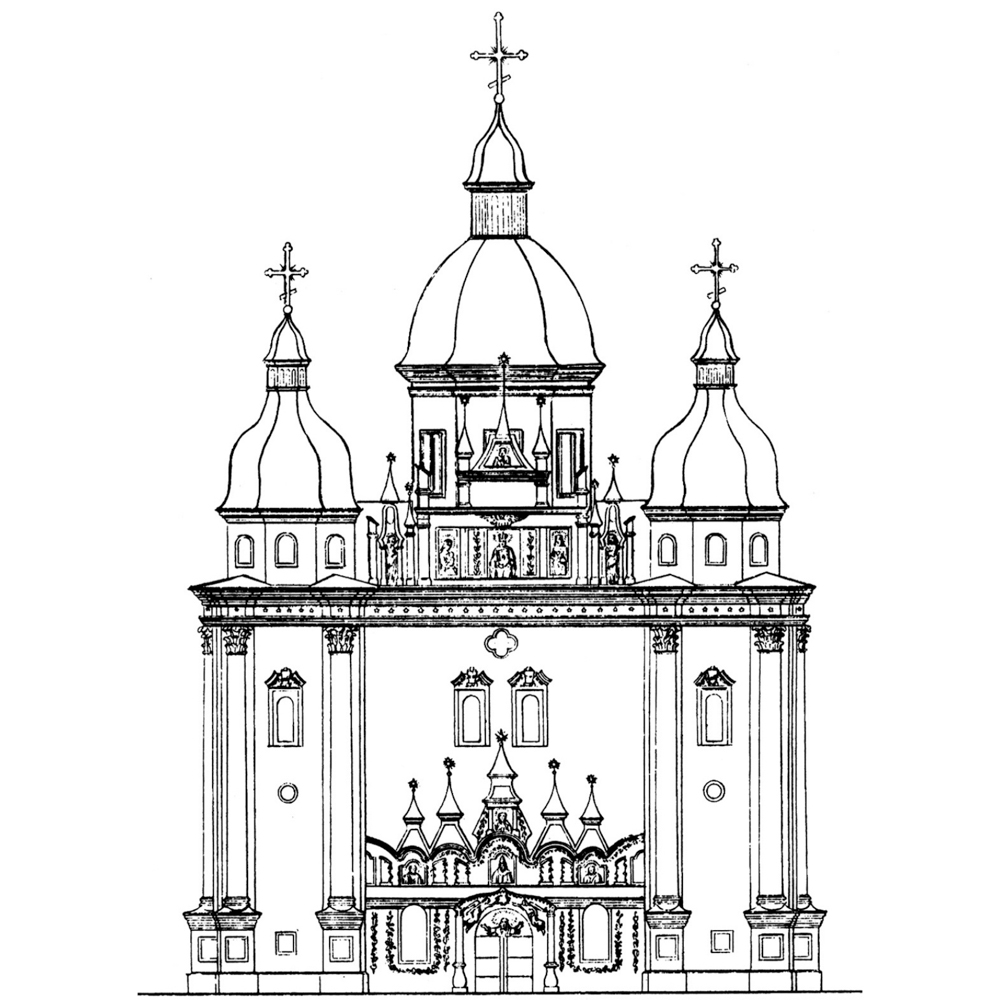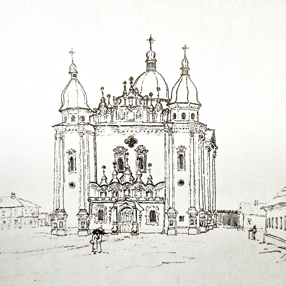 Микільський собор, малюнок з фондів Державної наукової архітектурно-будівельної бібліотеки імені В.Г. Заболотного