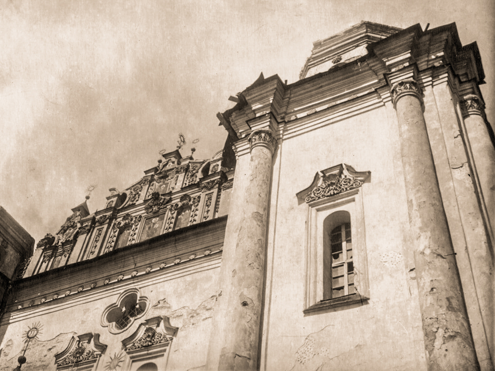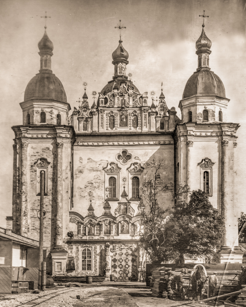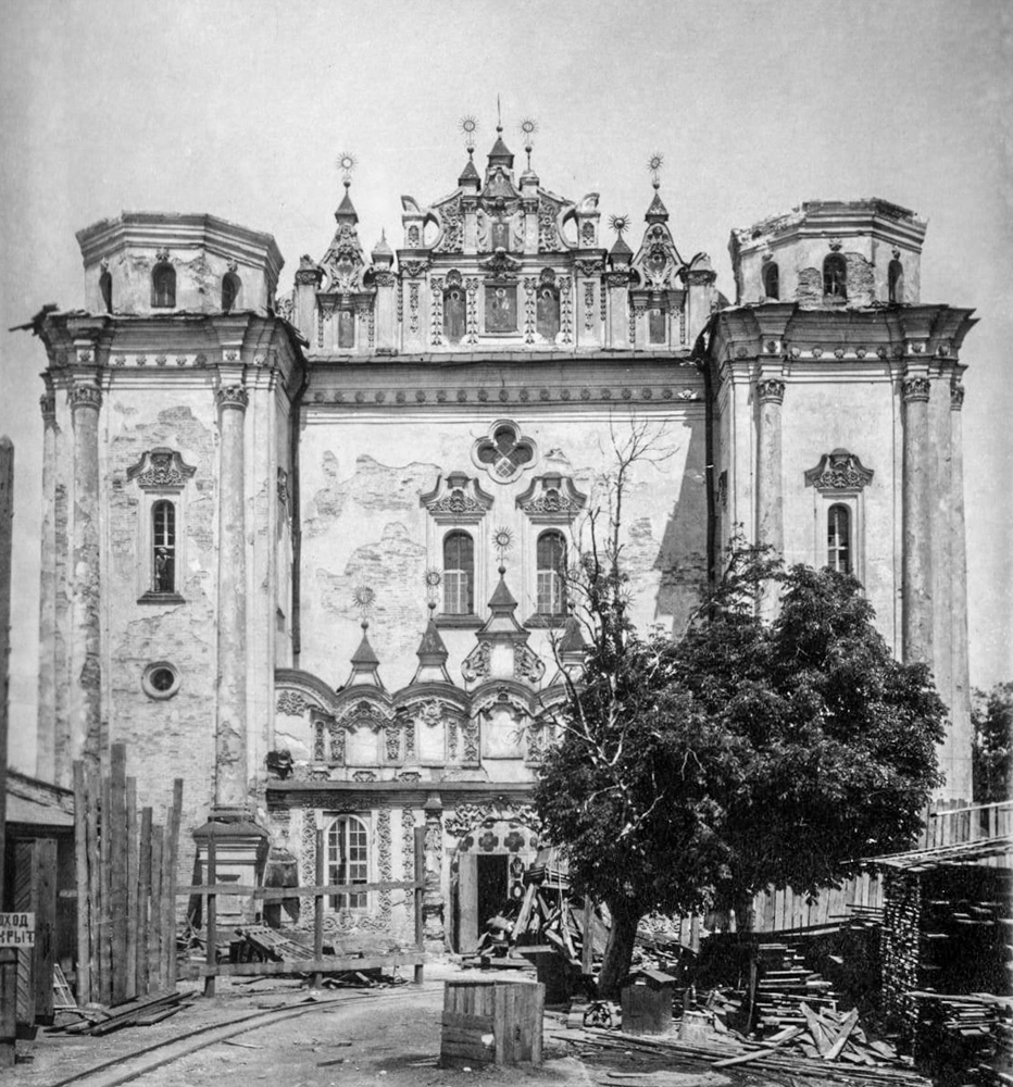 – тобто тотальної більшості давньоруських і козацьких церков. Негайно за тим варварським посилом мазепинську перлину на Печерську почали кромсати: спочатку зняли бані, понівечили начиння, а потім повільно, аж до 1936 року, по шматках розбирали по цеглині стіни.
