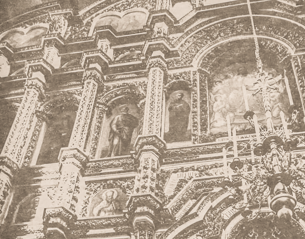 Деталь головного іконостасу Микільського собору, Київ, світлина початку XX ст.