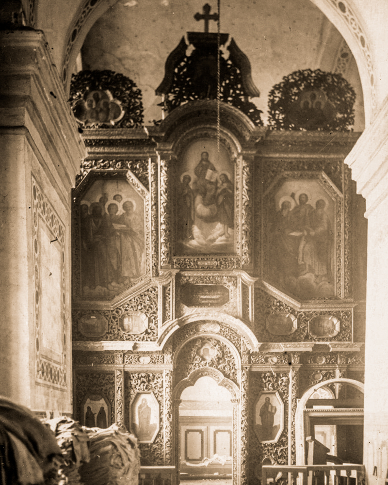 Іконостас у вівтарі Антонія і Феодосія Печерських, Микільського собору, Київ, світлина з архіву Леґіону Українських Січових Стрільців, 1918 р.