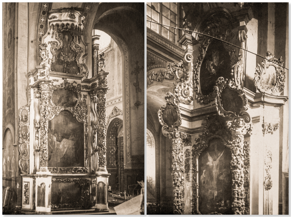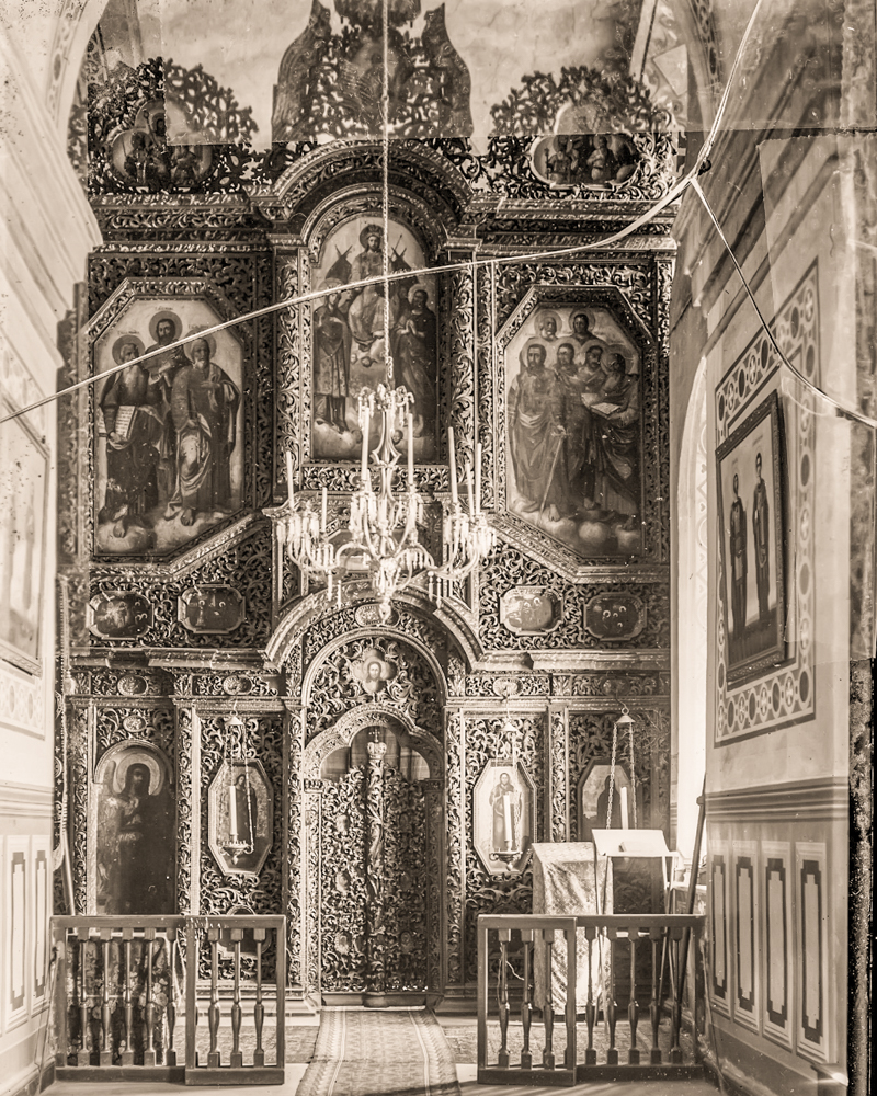 Іконостас у бічному вівтарі Микільського собору, Київ, світлина експедиції С. Таранушенка, 1930-і рр.