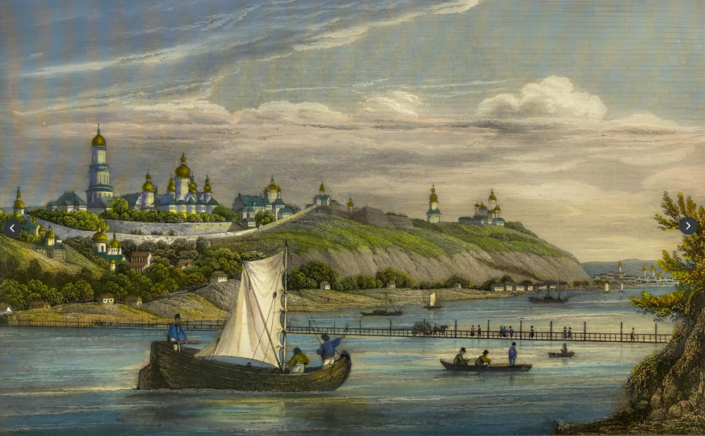 Краєвид Дніпровських пагорбів (Микільський собор по центру), Київ, гравюра Франтішека Рибічки, 1850 р.