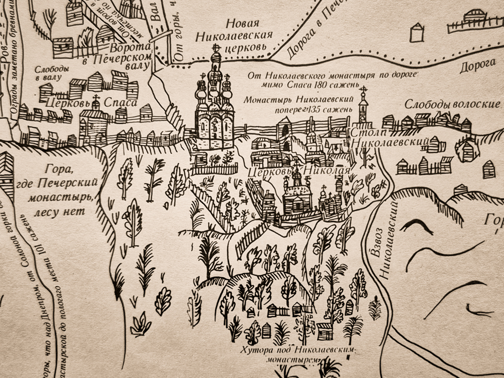 Пустинно-Микільський монастир, фрагмент плану І. Ушакова, 1695 р.