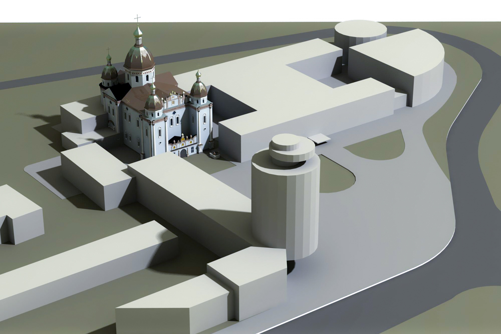 Проект відновлення будівель Микільського монастиря, Київ, площа Слави, макет початку 2000-х рр.