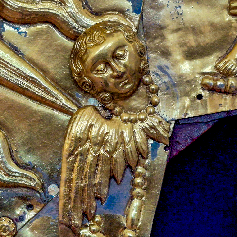 Пізніший кіот роботи українських золотарів – яскравий взірець вітчизняного художнього карбування. Особливої уваги вартують образи біблійних персонажів і вигадливий архітектурний ансамбль на нижній пелюстці.
