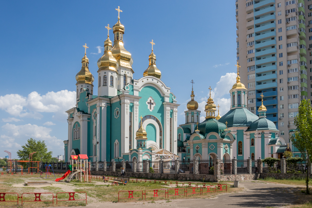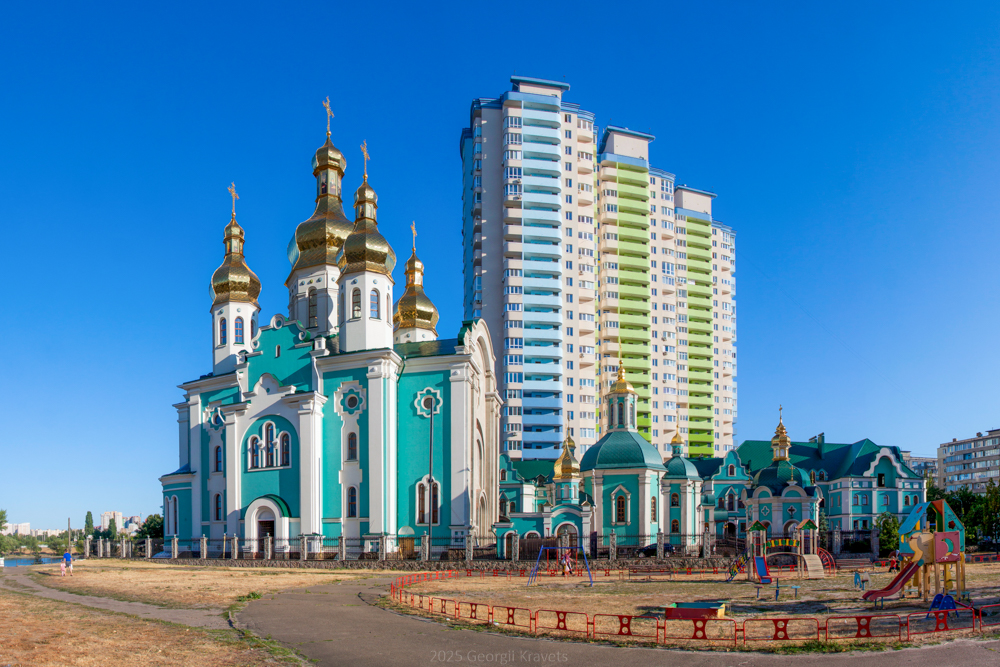 Помпезна будівля, зведена впродовж перших десятиліть XXI століття на березі озера Тельбін, що на столичному Лівобережжі, є центральною спорудою чималого однойменного храмового комплексу. Її архітектура вкрай показово поєднує російську традицію сакрального мурування із яскравим оформленням у дусі козацького бароко. Подібна тенденція видається доволі типовою для значної частки новітніх монументальних об’єктів Київської митрополії Української православної церкви Московського патріархату.